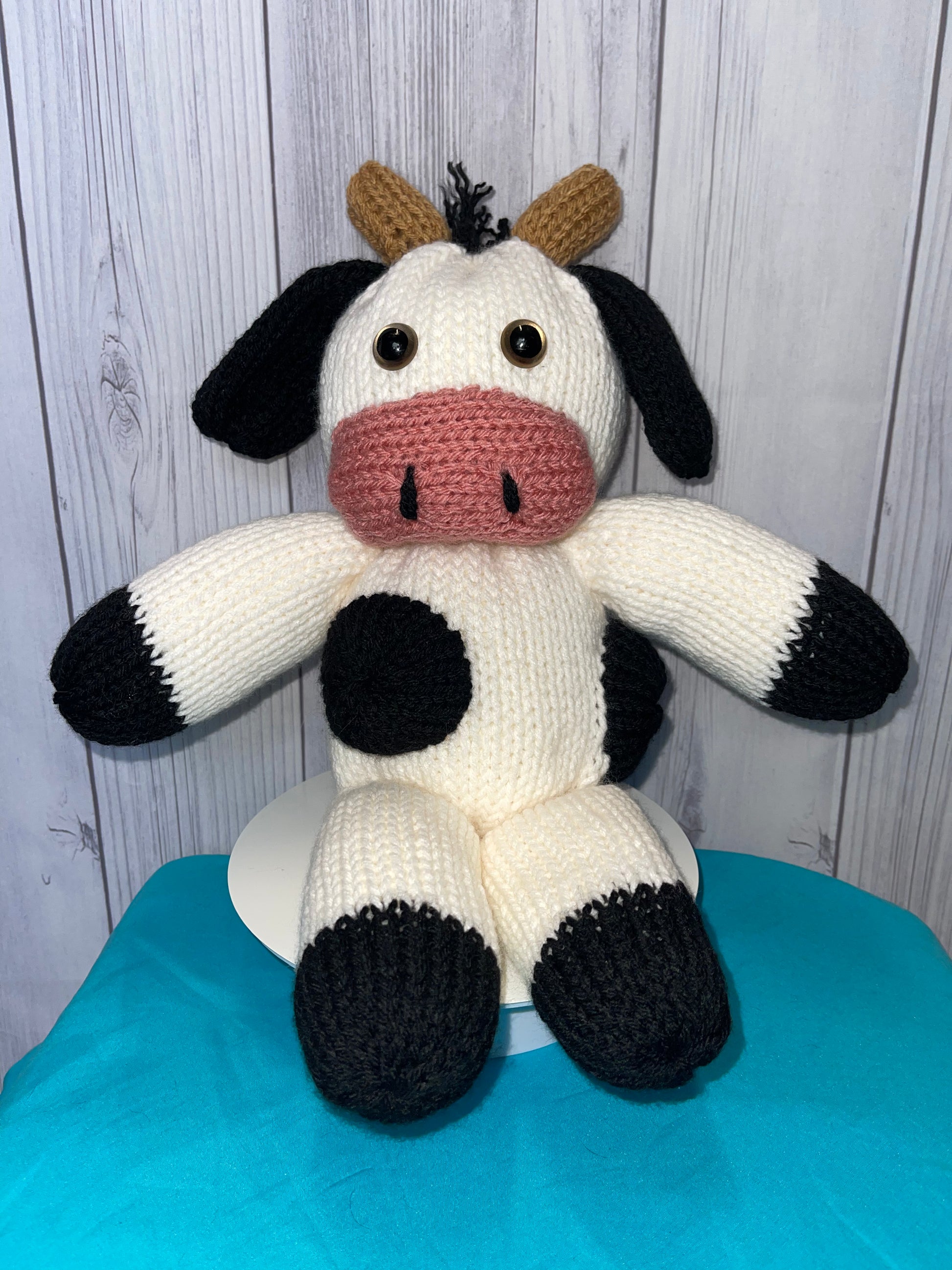 This adorable Ms. Moo Cow is white with black spots.